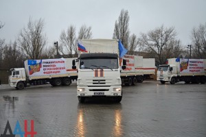 Конвой МЧС России разгрузился на складах ДНР и отправился в обратный путь (24.03.2016)