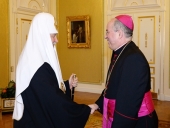 Святейший Патриарх Кирилл встретился с апостольским нунцием архиепископом Иваном Юрковичем, завершающим свое служение в России (31.03.2016)