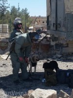 Помимо роботизированной техники для очистки местности в Пальмире российские военные используют специально обученных собак.