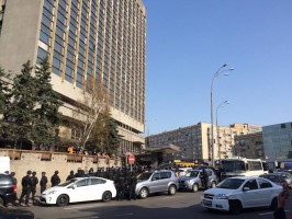 Сегодня утром полицейский спецназ окружил гостиницу. Как сообщили в Главке нацполиции – проводится спецоперация по выдворению нежеланных постояльцев. Уже в десять утра к зданию на площади Победы, 1 подъехало два служебных автобуса с экипированными спецсредствами полицейскими. Готельный комплекс окружили правоохранители.