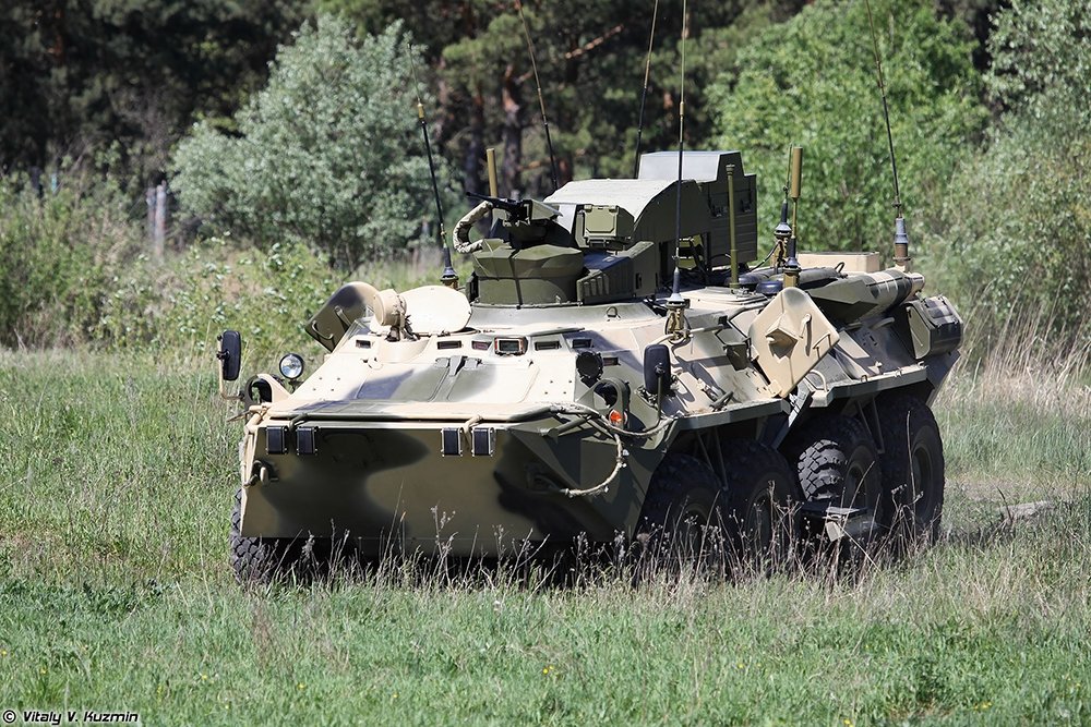 БПДМ "Тайфун" создана на базе БТР-82, испытания машины завершились в 2012 году. От классического бронетранспортера ее отличает отсутствие башни - вместо нее на крыше броневика размещен боевой модуль с пулеметом ПКТ и масса аппаратуры, упрятанной в ощетинившиеся антеннами металлические короба. Электроникой забито и десантное отделение.