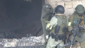 Согласно предварительной информации в домовладении засели трое террористов. К осажденному дому подогнали бронетехнику и под ее прикрытием попытались захватить бандитов, однако это не удалось.