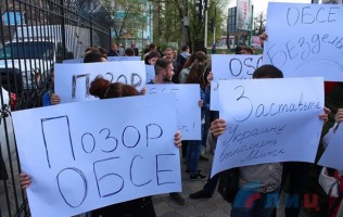В Луганске проходит пикет перед офисом ОБСЕ с требованием объективной информации (14.04.2016)