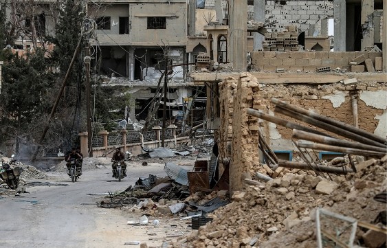 В освобожденном от террористов ИГИЛ (запрещена в РФ) городе Эль-Карьятен ремонтными бригадами расчищено 150 метров улиц, восстановлено 1,5 км линий электропередач, отремонтировано 1 здание.