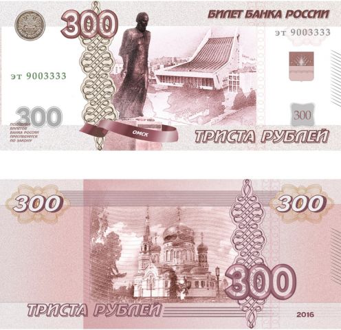 Жители Омска выступили с предложением к Центробанку России о введении в оборот купюры номиналом 300 рублей. На новой банкноте, по замыслу авторов петиции, могут быть изображены Воскресенский собор, фигура Достоевского и Музыкальный театр Омска.