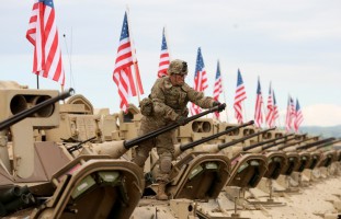 По данным ведомства, для участия в маневрах США доставили на пароме из Болгарии в грузинский порт Поти танки Abrams типа M1A2 и боевые машины пехоты Bradley, которые затем по железной дороге будут отправлены в Вазиани.