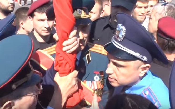 Полиция в Черкассах открыла уголовное дело за использование ветеранами Знамени Победы (09.05.2016)