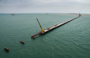 Началось строительство моста через Керченский пролив на морских участках, до этого возведение моста велось на суше.