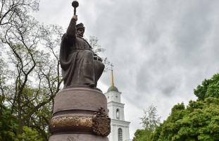 Памятник Мазепе в Полтаве, открытый в мае президентом Украины, облили краской (02.06.2016)