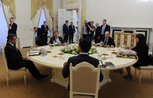 Встречи "на полях" ПМЭФ Путин начал еще в среду вечером, он провел неформальный ужин с бывшим президентом Франции Николя Саркози.