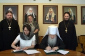 В подписании документа приняли участие управляющий Московской епархией митрополит Крутицкий и Коломенский Ювеналий и начальник Главного управления культурного наследия Московской области В.В. Березовская. На встрече присутствовали секретарь Московского епархиального управления протоиерей Михаил Егоров, епархиальный древлехранитель игумен Серафим (Голованов), заместитель начальника управления использования объектов культурного наследия В.А. Олиференко.