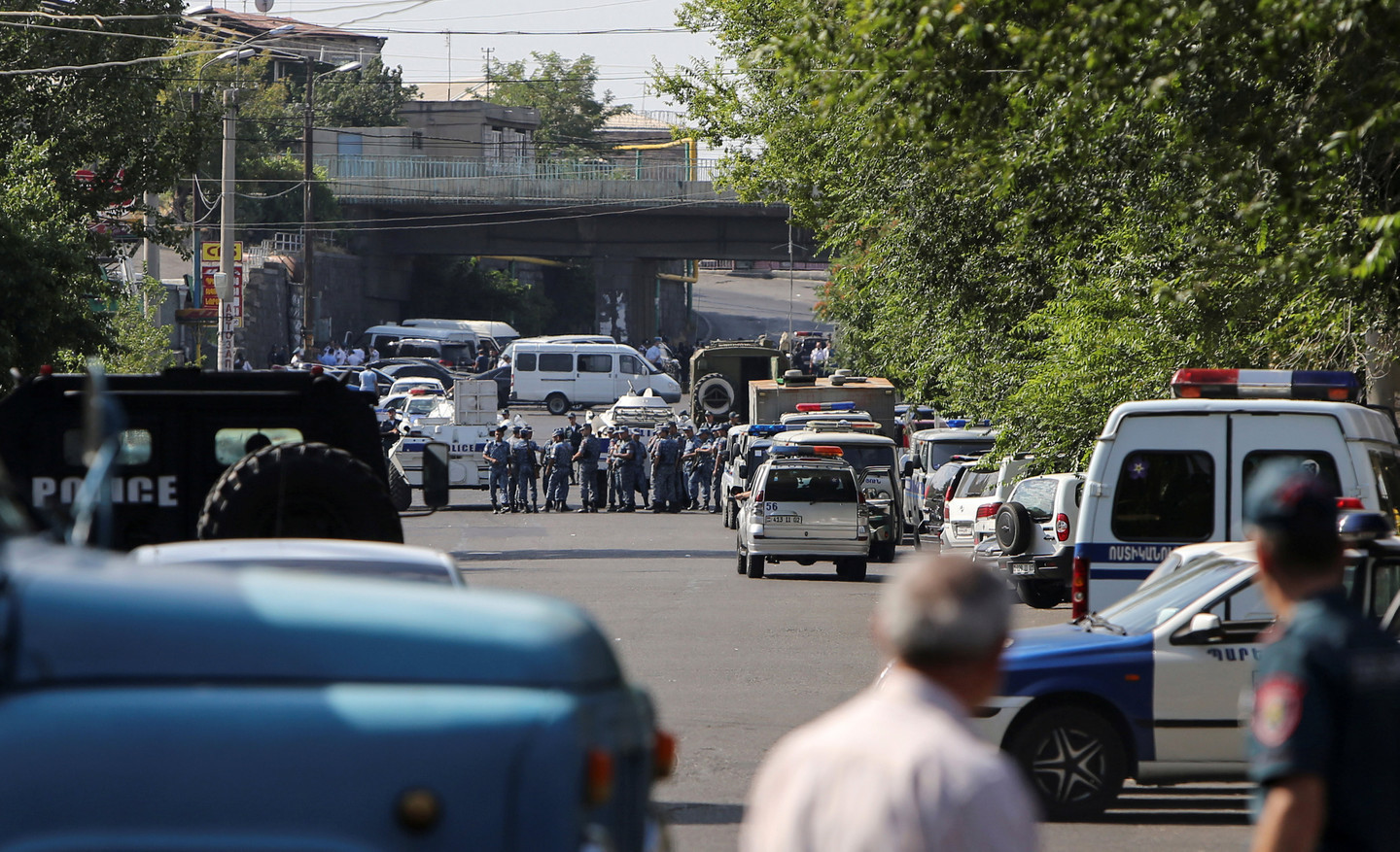 Напомним, накануне утром группа вооружённых оппозиционеров проникла на территорию полка патрульно-постовой службы и взяла нескольких сотрудников в заложники. Прибывшие для ведения переговоров заместитель начальника полиции Армении Вартан Егиазарян и замначальника полиции Еревана Валерий Осипян также были захвачены. Во время атаки погиб полковник Артур Ваноян, в числе раненых — четверо полицейских.