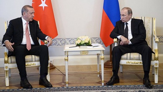 Эрдоган во вторник прилетел в Санкт-Петербург для переговоров с президентом России. Встреча прошла в Стрельне, она стала первой после инцидента с уничтоженным Су-24, вызвавшим кризис в отношениях двух стран. После двухчасовых переговоров в узком составе к главам государств присоединились глава национальной разведывательной организации Турции Хакан Фидани и начальник Генштаба Вооруженных сил России, первый замглавы Минобороны Валерий Герасимов.