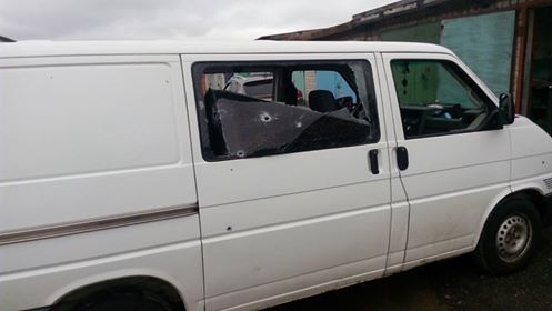 «Попало не туда, где сидели люди, но там, где людей не было, всё прошило насквозь. Меня не было в этом микроавтобусе в тот момент, я отъехал чуть раньше. Но это наш микроавтобус, в котором мы тут ездим. Изрешетили наш автобус — стреляли из гаубицы, 122-х, тяжёлого вооружения.
