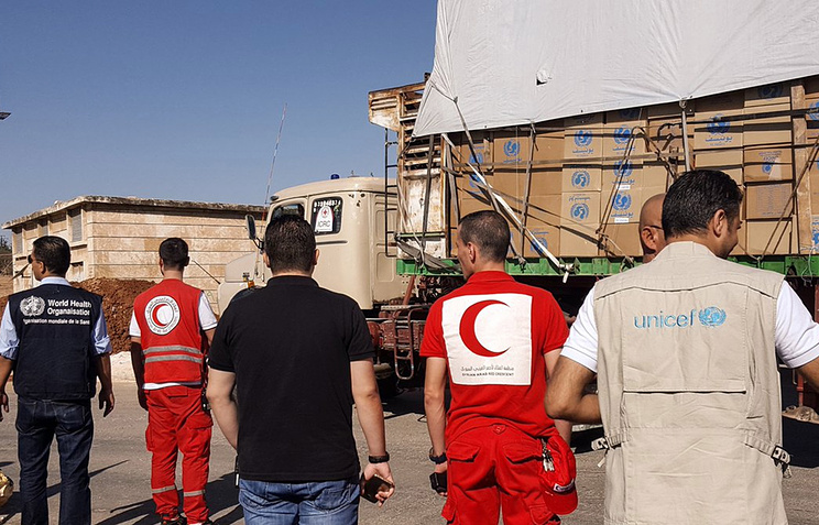 Ранее официальный представитель генерального секретаря ООН Стефан Дюжаррик заявил, что он не может подтвердить информацию о погибших в результате, как на тот момент считалось, обстрела гуманитарного конвоя в сирийской провинции Алеппо. Он подтвердил, что обстрелу, по первоначальным оценкам, подверглись 18 из 31 грузовика, доставлявшего помощь ООН и Сирийского общества Красного Полумесяца для 78 тысяч жителей труднодоступного города Урем эль-Кубра, который расположен к западу от города Алеппо. Кроме того, удару подвергся склад Сирийского общества Красного Полумесяца в городе Биг-Орем.