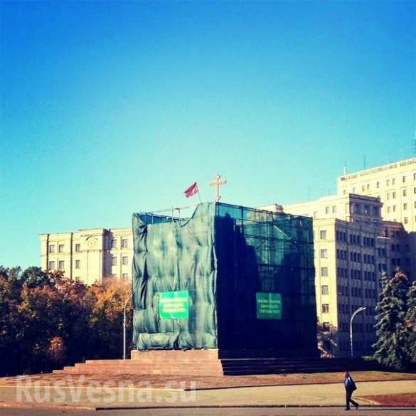 В Харьков активисты Сопротивления установили флаг Новороссии на постаменте разрушенного памятника Ленину (фото) (07.10.2014)