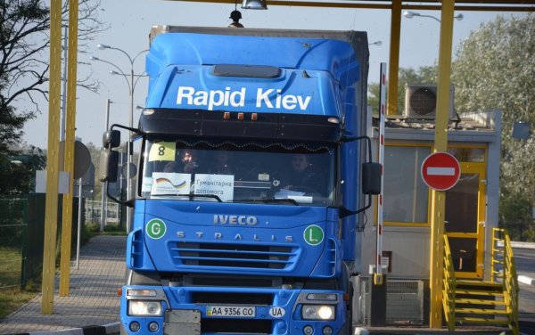 Гуманитарный конвой из Германии попал в крупное ДТП на территории Украины (07.10.2014)