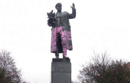 Акт вандализма был совершен ночью. Розовой краской были окрашены брюки маршала и нижняя часть его шинели. Как сообщается, районные власти уже очистили монумент, вернув ему первоначальный вид.
