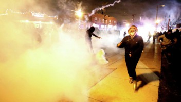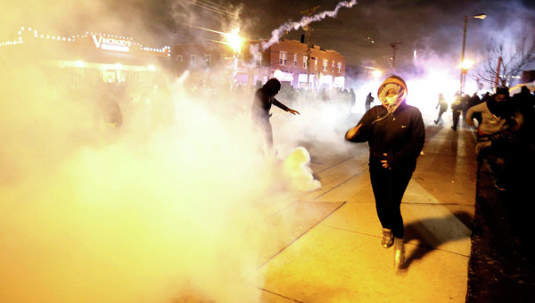 Коллегия присяжных в понедельник отказалась выдвинуть обвинение в убийстве полицейскому, застрелившему в августе текущего года в пригороде Сент-Луиса Фергюсоне подростка-афроамериканца. Сразу за объявлением решения присяжных в Фергюсоне начались протесты, полиция ответила дымовыми шашками, однако очевидцы сообщают о распылении слезоточивого газа. Как сообщали местные СМИ, протестующие били витрины, кидали камни, грабили и поджигали магазины. О задержаниях не сообщалось.