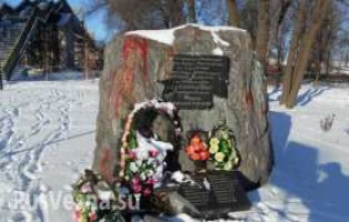 Неизвестные вандалы разбили памятные доски и облили памятник красной краской.