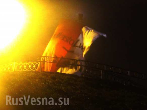 Во Львове ночью неизвестные вывесили и заминировали флаг Польши (17.12.2014)