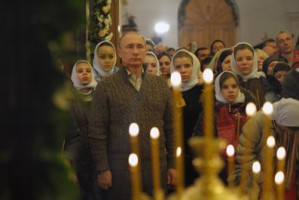 Владимир Путин присутствовал на Рождественском богослужении в храме под Воронежем (07.01.2015)