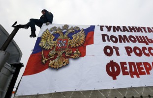 Колонна МЧС России доставила гуманитарную помощь в Донецк и Луганск (08.01.2015)