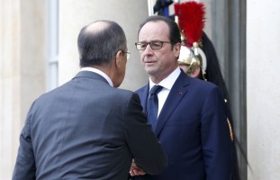 Глава МИД РФ Сергей Лавров прибыл в Елисейский дворец. На ступенях его тепло приветствовал президент Франции Франсуа Олланд.