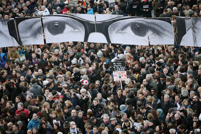 Маршрут 3-километрового парижского шествия от площади Республики к площади Нации пролегал через бульвар Вольтера. Знаменитый философ отстаивал важнейший принцип свободы слова: "Я не согласен ни с одним словом, которое вы говорите, но готов умереть за ваше право это говорить".