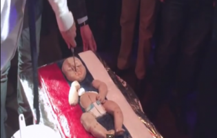 В киевском ресторане под одобрительные крики толпы резали торт в виде “русского младенца” (12.01.2015)