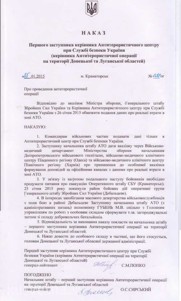 Опубликован приказ хунты о стрельбе на поражение в убегающих с поля боя бойцов ВСУ (28.01.2015)