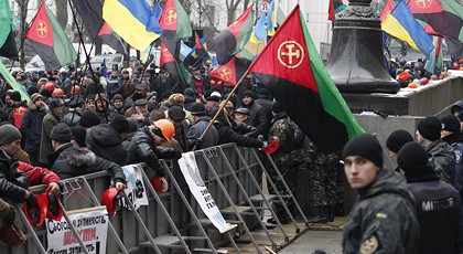 У здания Минэнерго Украины в Киеве началась потасовка между шахтерами и охраной (29.01.2015)