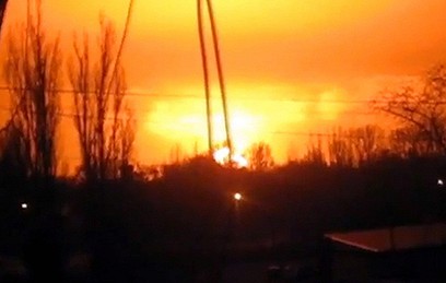 В воскресенье вечером в Донецке произошел мощный взрыв. Вспышка была видна за несколько километров. Взрывную волну ощутили жители Ворошиловского района. Часть домов Куйбышевского и Киевского районов остались без стёкол, со стороны донецкого аэропорта наблюдалось ярко-красное зарево.