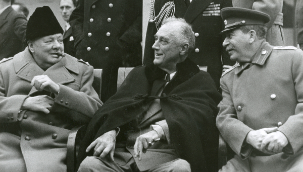 На ней лидеры стран антигитлеровской коалиции - СССР, США и Великобритании - начертили границы нового, послевоенного мира. В экспозиции представлены уникальные кадры кино- и фотохороники, засекреченные записи заседаний, меморандумы и протоколы. Также можно увидеть предметы, раскрывающие любопытные детали встреч "большой тройки" - Сталина, Рузвельта и Черчилля. К примеру, портсигар, который подарил премьер-министр Великобритании сотруднику НКВД за обеспечение безопасности на конференции; дневниковые записи членов делегации и даже справка о наличии продуктов.