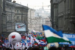 В субботу в Москве прошел массовый митинг движения "Антимайдан", основанного группой российских общественников, призвавших граждан к единению против внешних угроз. По официальным данным московской полиции, в субботней акции приняли участие порядка 40 тысяч человек, что оказалось в несколько раз больше изначально согласованной с московскими властями заявки.