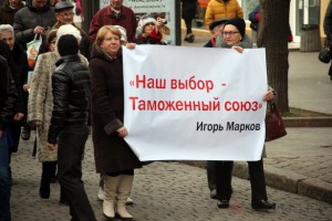 Демонстранты высказали свое недовольство политикой евроинтеграции, а также выступили за федерализацию Украины и вступление в Таможенный союз.