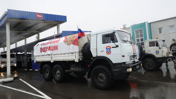 Колонна гуманитарной помощи Донбассу достигла границы с Украиной (15.03.2015)