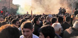 На фото: Армения. Ереван. 23 апреля 2018. Участники митинга на площади Республики после известия об отставке главы правительства Армении Сержа Саргсяна. Премьер-министр Армении Серж Саргсян ушел в отставку из-за уличных акций протеста. Антиправительственные протесты в Армении не были Майданом. И не ...