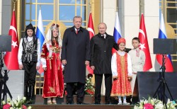 Р.Т.Эрдоган (как переведено): Дорогой друг господин Путин! Дорогие члены делегации! Уважаемая пресса! Приветствую всех вас от всей души. В первую очередь хочу ещё раз выразить удовлетворение тем, что мы приветствуем здесь, в нашей стране, господина Путина и сопровождающ...